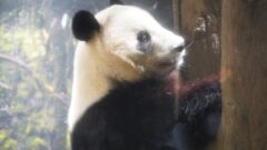 3回目は屋内でウロウロしてて、外で待機したらちょうど飼育員さんが竹交換し始めたので、シャオ君が人参2本持ちで食べる姿を見れました