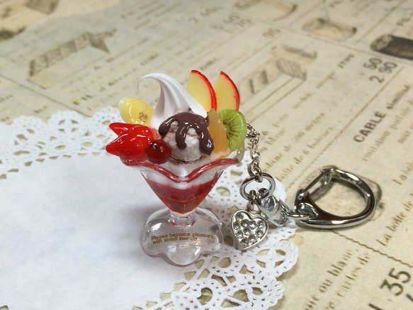 シャンはパフェのキーホルダーをかってもらいまちた ワーイ