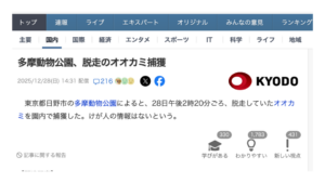 多摩動物公園でオオカミ脱走