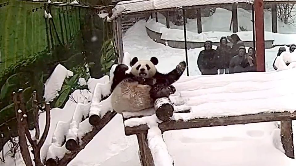 ☃️モスクワ動物園が、パンダのカチューシャが新雪に喜び、滑り台からすべり降りる映像を公開しています。