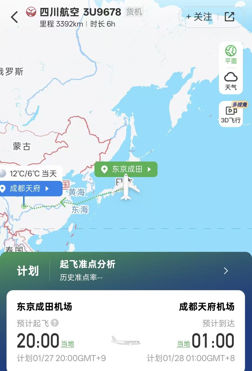 • フライト情報:四川航空貨物便、便名はCSC9678(3U9678とも表示されます)