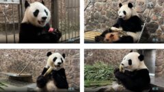 「あい、レジで日本にいた歴代パンダの写真を3枚見せましゅ