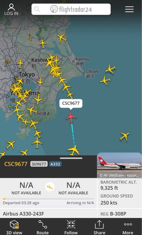 まだフライトレーダーにお迎えの飛行機は出てこない