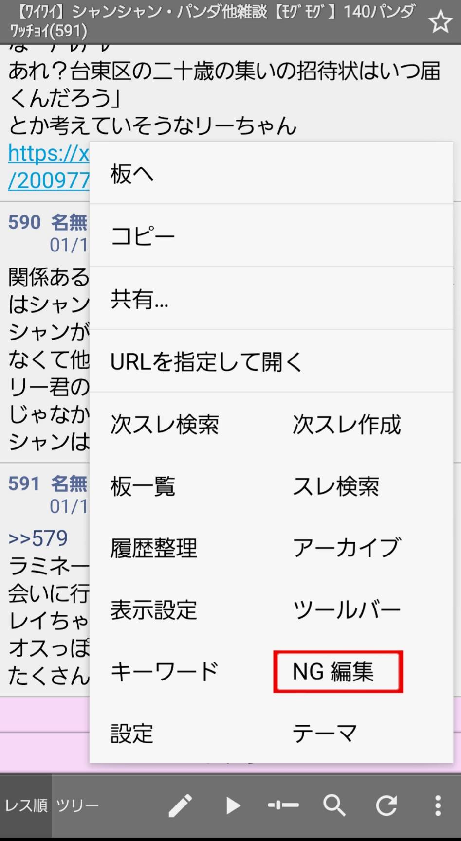 1.下部のメニューからNG設定画面を選択する