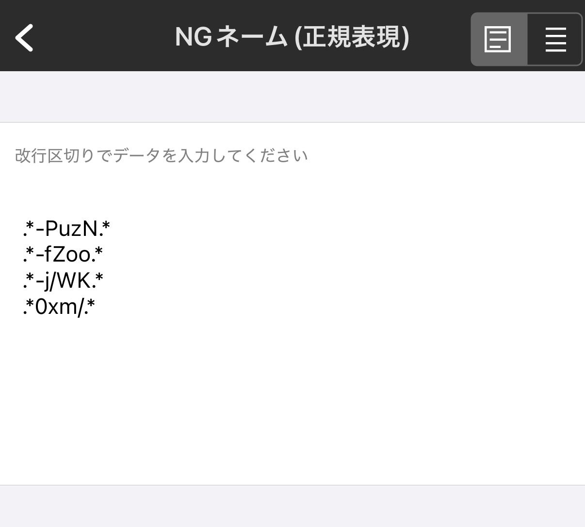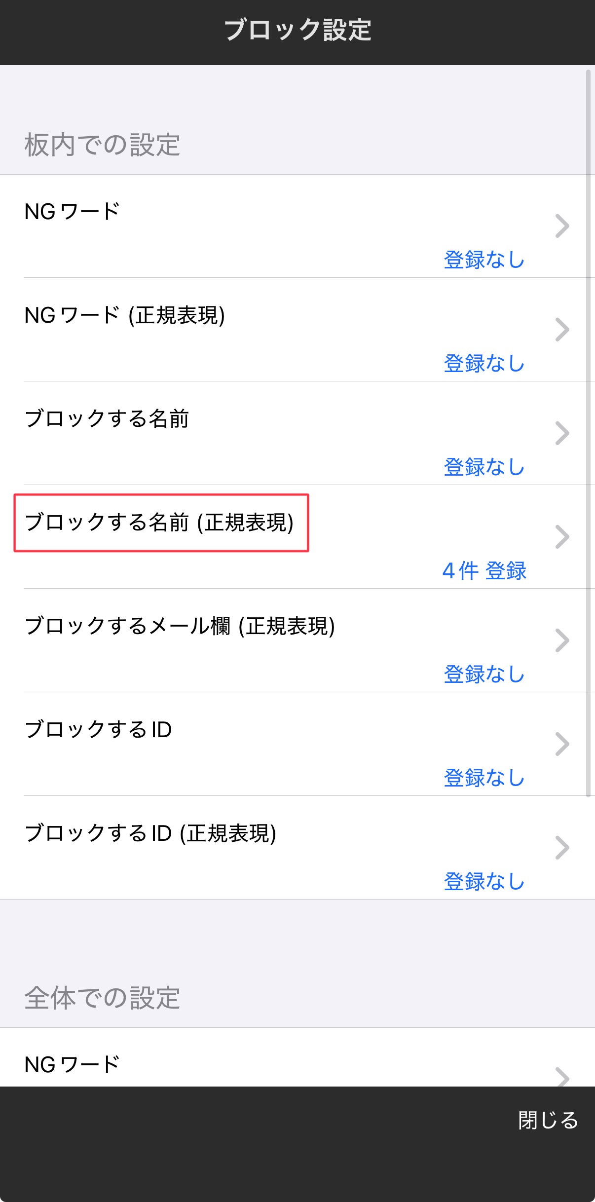 2.「ブロックする名前(正規表現)」をタップ